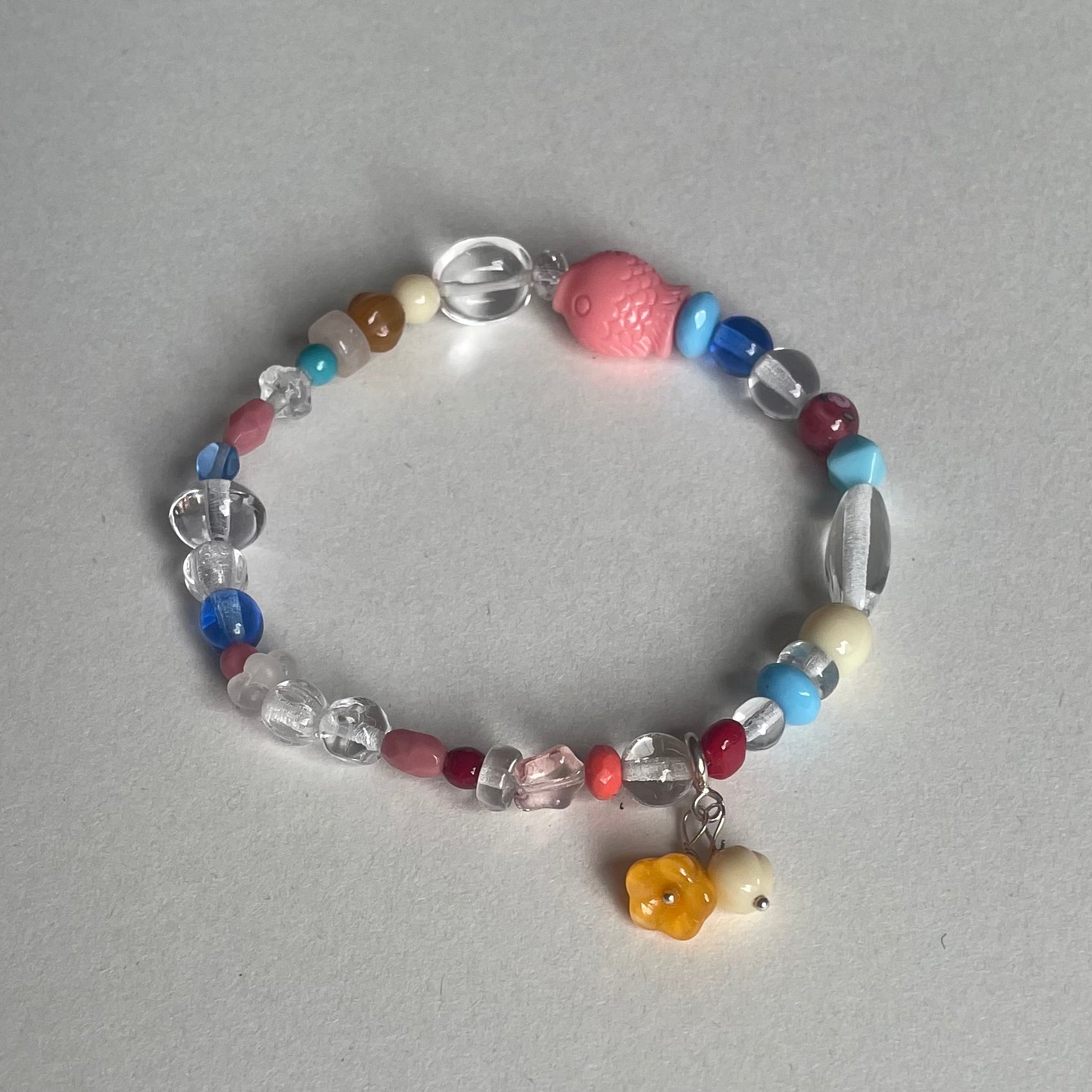 Håndlavet armbånd med aftageligt vedhæng og glasperler