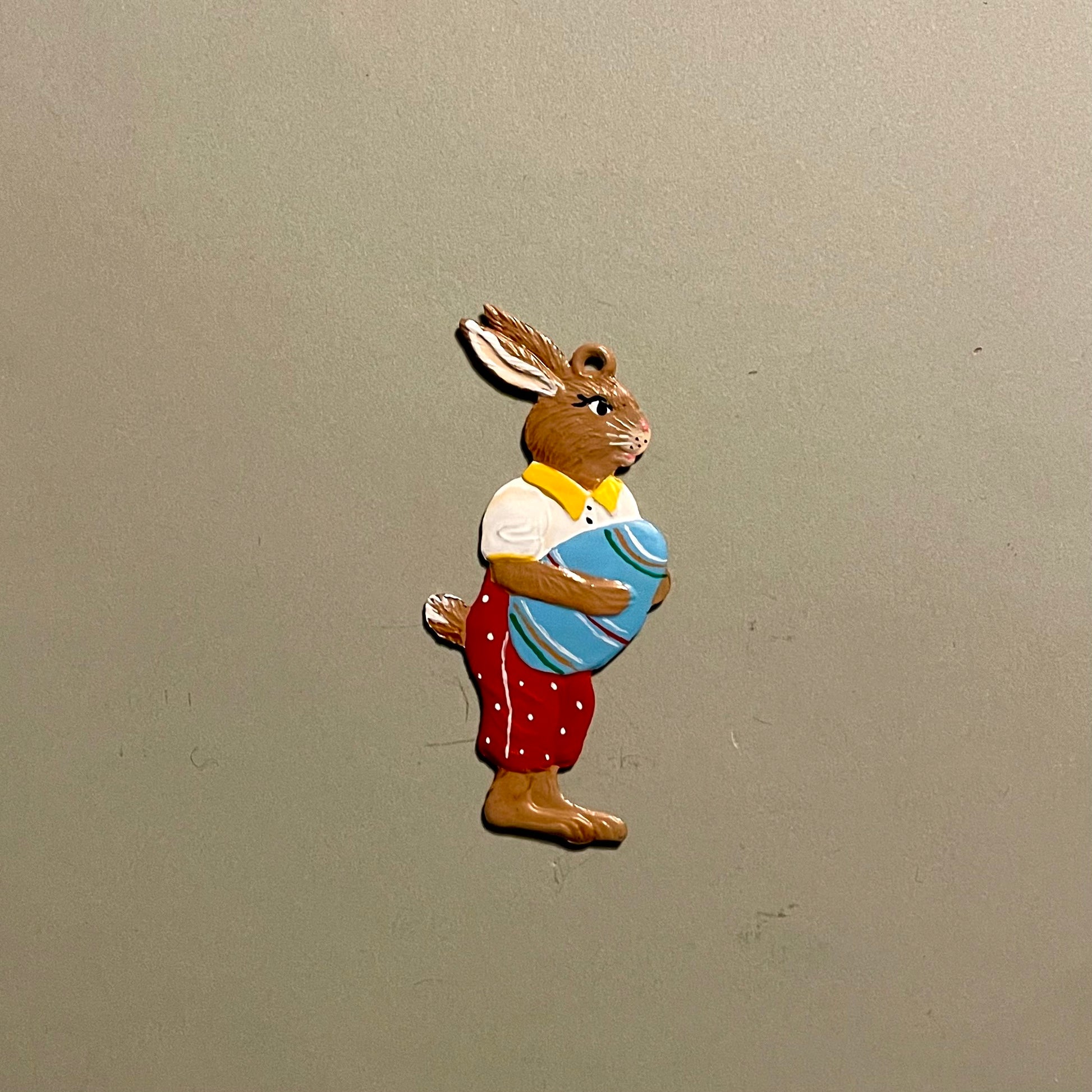 Håndlavet og håndmalet tin ophæng af en sød påskehare