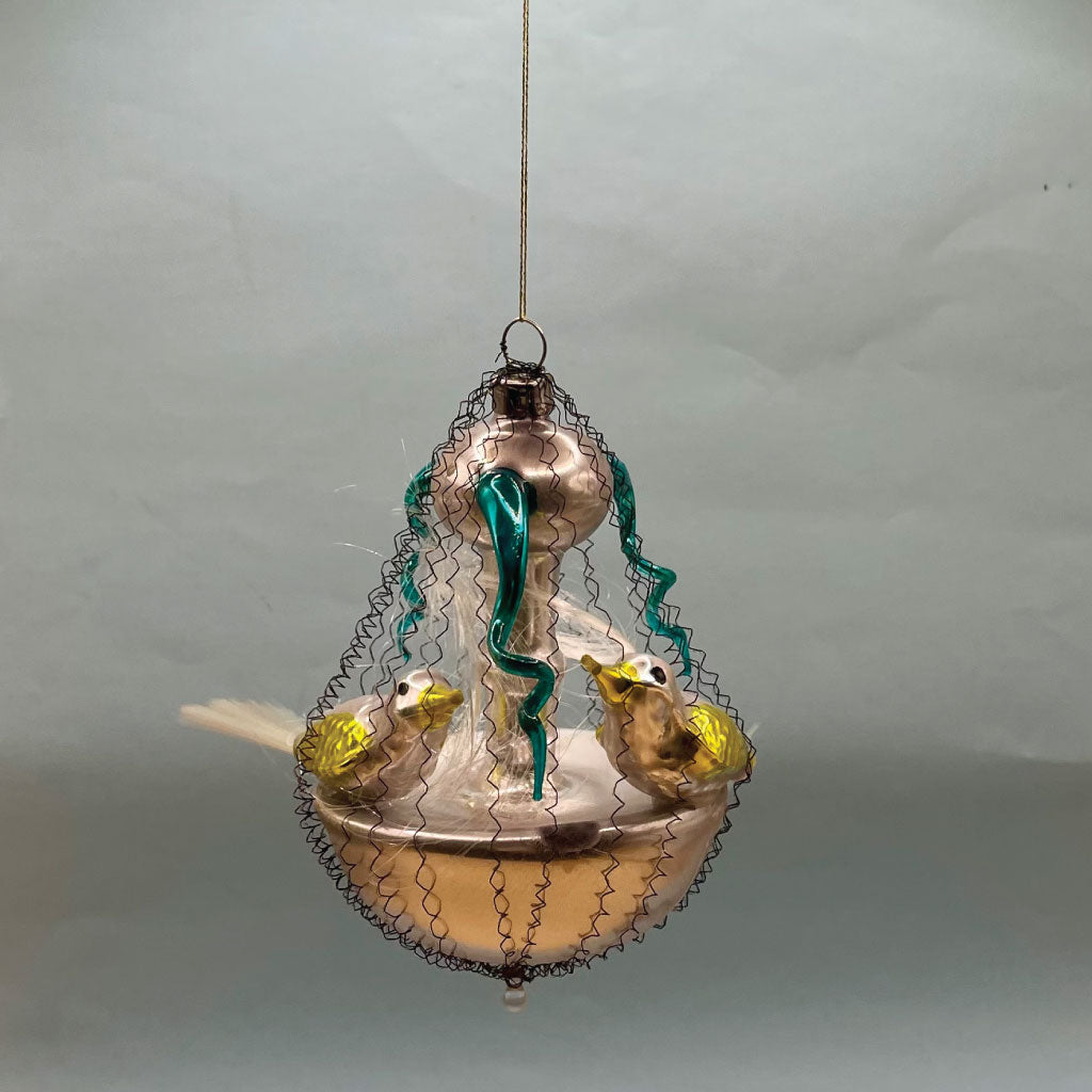 Dette unikke ornament forestiller et smukt springvand med to detaljerede fugle, der tilføjer elegance og charme til juletræet. De fine detaljer og det nostalgiske design skaber en fortryllende stemning, perfekt til at bringe lidt ekstra magi ind i julen.